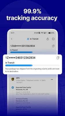 Effortlessly track packages from over 2500 carriers worldwide, including USPS, FedEx, UPS, DHL, and more, all in one place. Never wonder about your parcel's location again! 17TRACK provides real-time tracking updates and instant notifications, so you'll always know the exact status of your shipments. Whether you're expecting a delivery from Amazon, AliExpress, eBay, Temu, Shein, Wish, or any online retailer, 17TRACK has you covered.