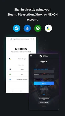 • Sign in easily with your Steam, PlayStation, Xbox, or NEXON account